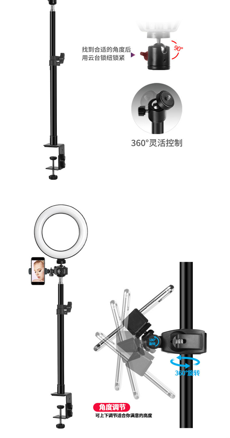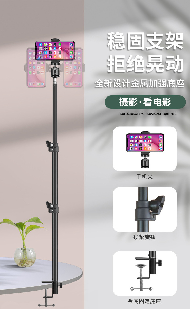 - Большой зажимной настольный телескопический кронштейн, мобильный телефон опорта, черный