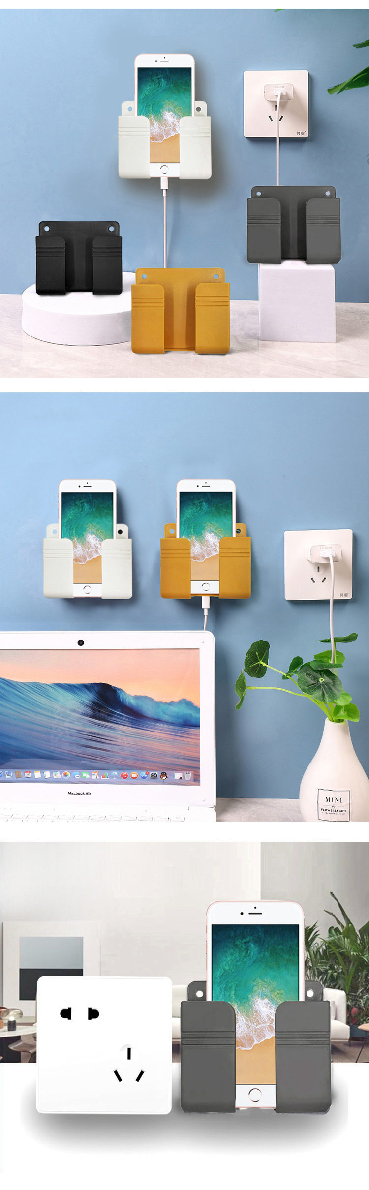 Держатель для телефона, мобильный телефон с зарядкой, настенный пульт, фиксаторы в комплекте