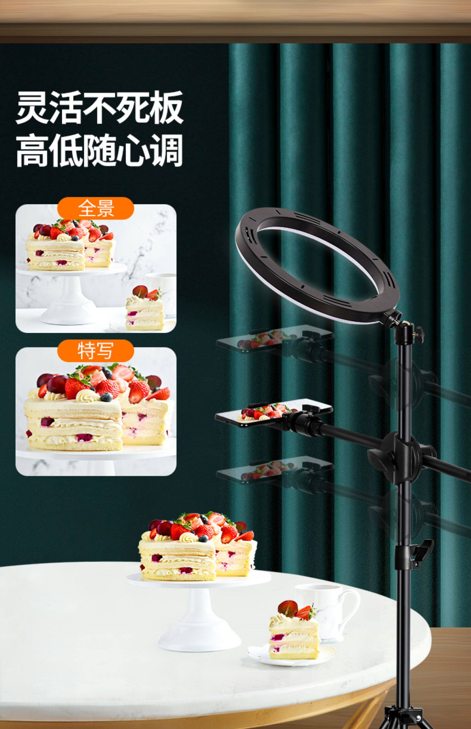 Мобильный телефон, настольная профессиональная трубка, заполняющий свет, универсальный напольный штатив, популярно в интернете, деликатесы