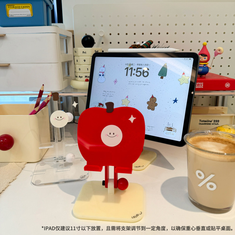 Акриловая подставка для мобильного телефона с милым улыбающимся лицом, подставка для планшета iPad, рождественское яблоко, фруктовый прозрачный подъемный складной настольный универсальный зачинщик, нишевый дизайн LELIO, погоня за трендами, драмы и фильмы