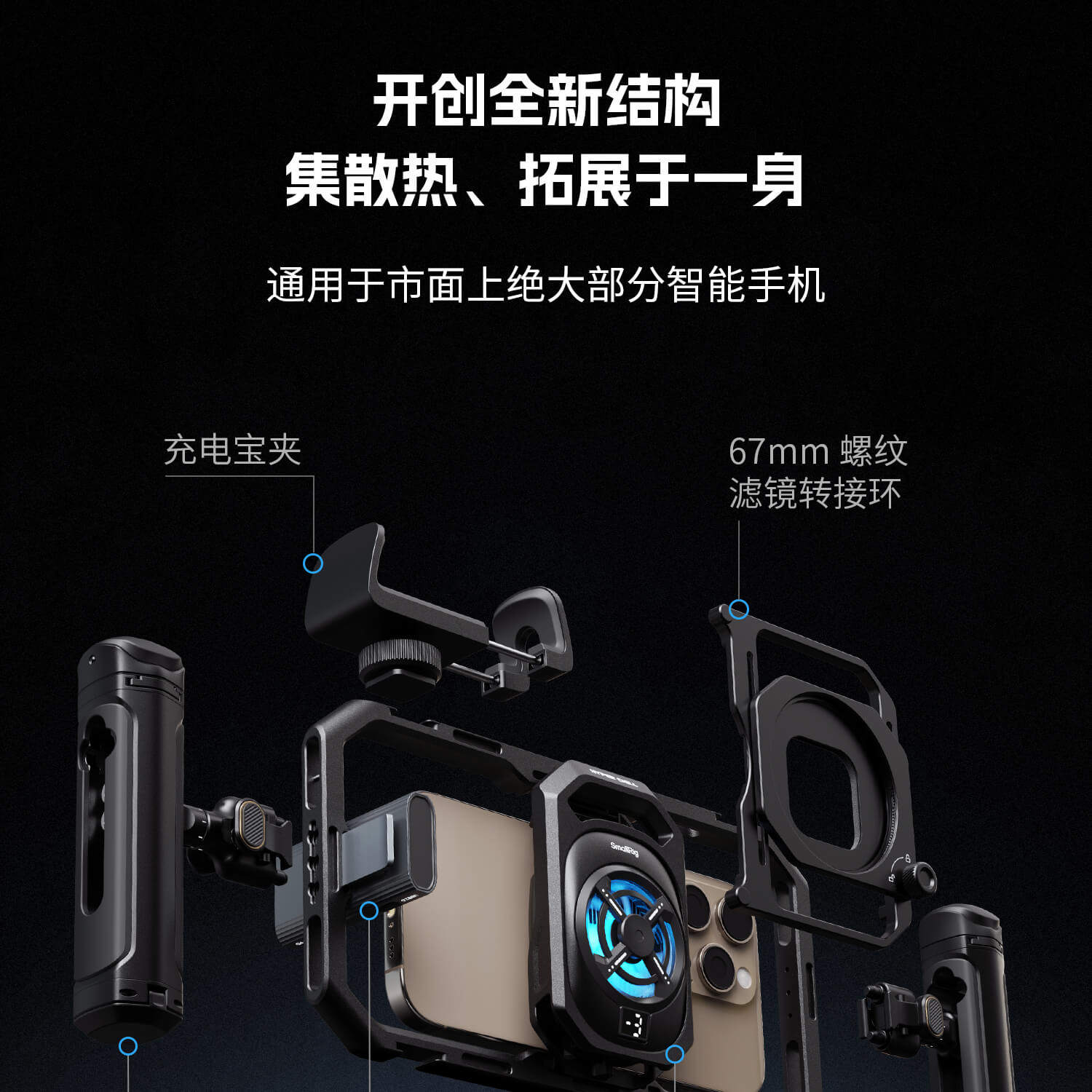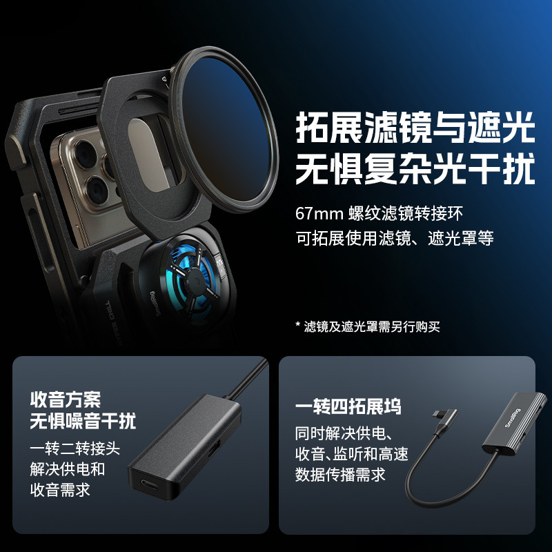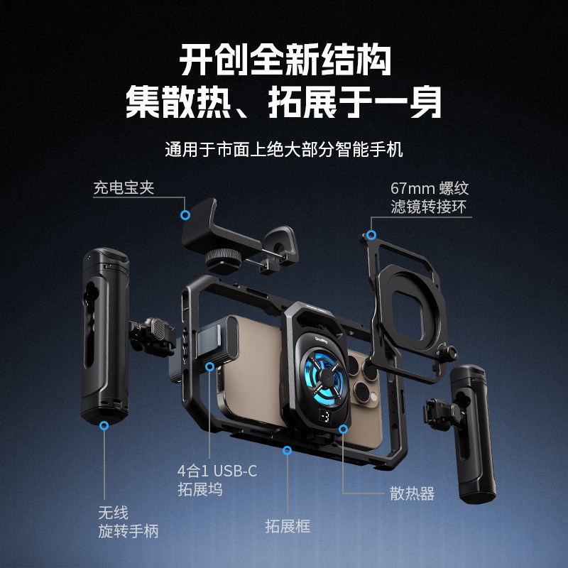 Смог «все в одном» Профессиональный комплект для обработки изображений для сотового телефона Охлаждение сотового телефона Комплект для ручной съемки Кроличья клетка для сотового телефона Двойная портативная рамка расширения Радиатор для сотового телефона Видеозапись Помощник по видеозаписи