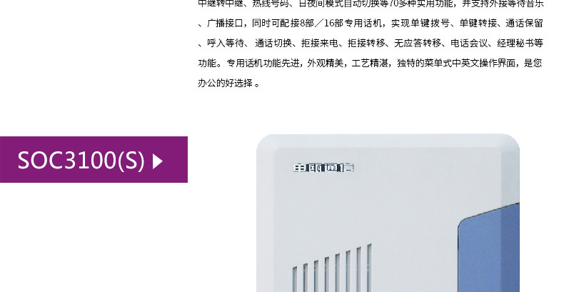 Групповой телефон SOC3100 сочетает в себе преимущества многих внутренних и иностранных групп и в то же время включает в себя новую концепцию дизайна. Это новый продукт, предназначенный для бизнеса, предприятия и управления гостиницей.Цифровые специальные машины для специальных вызовов применяют международную передовую технологию двойного моделирования, а клавиатуры не изношены и не подключены. Используется метод работы меню, а шесть строк/две линии отображаются на китайском и английском языке. У него есть такие функции. как управление визитками и вызов брандмауэра.