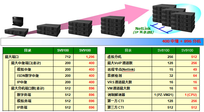 19 -дюймовая машина для машины может вместить в общей сложности 111Порт (80Номер терминала).Чтобы расширить, система может увеличиться3индивидуальный19Рама дюйма, самая большая444Порт (368Номер терминала).проходитьIPПодключите, добавьте еще несколько19Дюймовая рама,SV9100 Максимальная масштабируемость системы составляет 1296 портов.