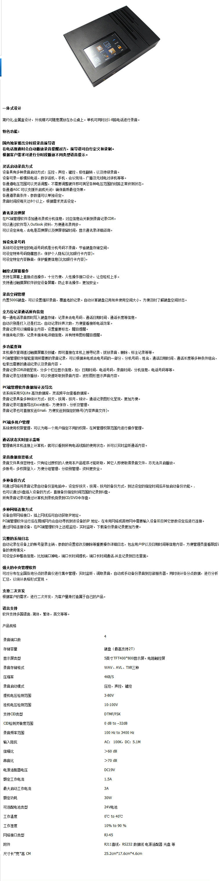 Специальный пионер VAA-X518 Четыре канала 30 000 часов телефонного регистратора Удаленный мониторинг управления