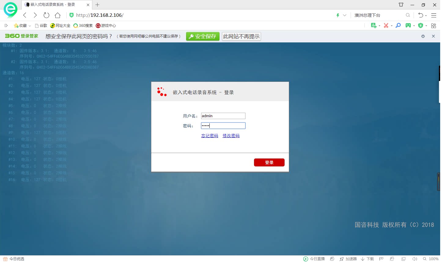 Вы можете войти в инструмент записи телефона для просмотра интерфейса управления.Адрес входа в систему - это IP -адрес регистратора (вы можете найти его в собственном управлении маршрутизацией или открыть клиента, чтобы напрямую просмотреть IP -адрес)
