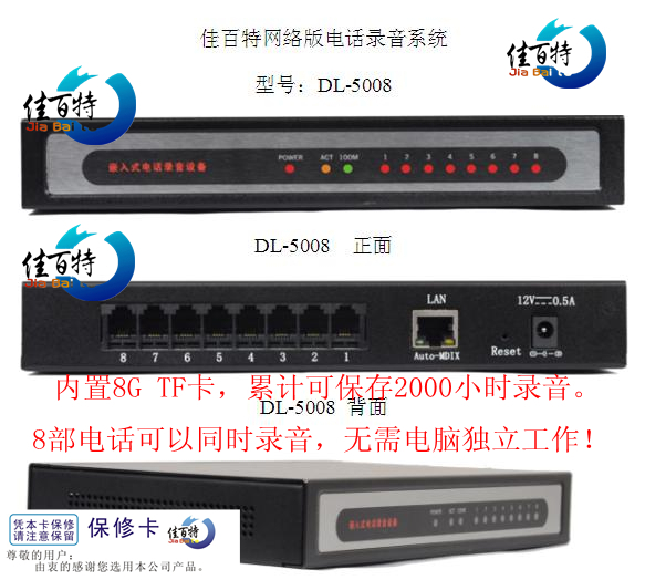 [佳百特网络版电话录音系统 型号:DL-5008]