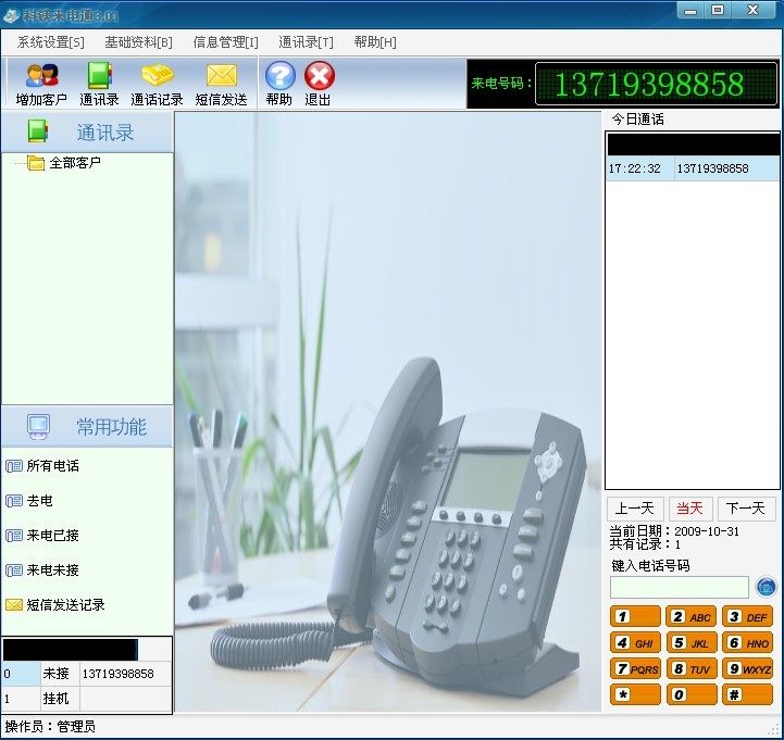 Основная функция:Звонящий на экране абонента вызывающего звонок звонит по управлению клиентами.