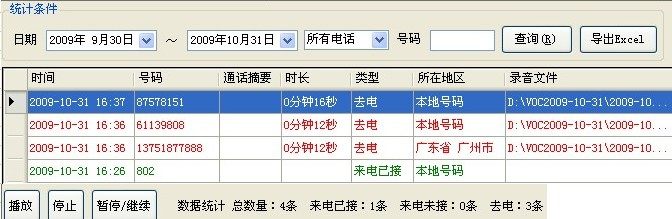 1Звоните в записи, вы можете запросить все вызовы в течение некоторого времени в соответствии со временем, всеми вызовами, вызовами, неудобными звонками и воспроизведением файлов записи в любое время.