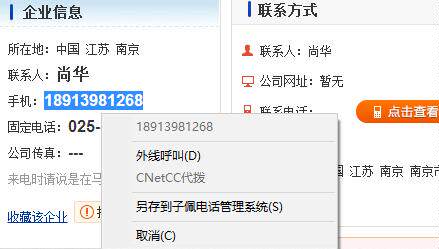 - Вы можете получить номер экрана и компьютерный наборПосле выбора текста на экране нажмите Ctrl+C, чтобы забрать номер. После того, как номер будет взят, вы можете набрать или сохранить номер. Кроме того, нажмите на контактное имя контактного лица в записи программного обеспечения. Кнопка - это набор, что очень удобно.