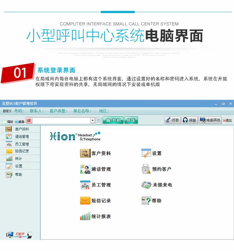 Hion/北恩 U800 Call Center Computer Bouncing Ecrecing Запись телефона Система управления клиентами COC