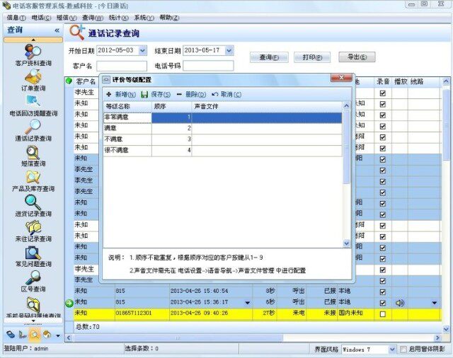 4. Вызов экрана бомбы, новые и старые клиенты сохраняют записи: система автоматически всплывает соответствующую информацию о клиентах, исторические записи и записи звонка в соответствии с номером вызывающего абонента, чтобы службы обслуживания клиентов были более вдумчивыми и более интимными; (например, контракты и т. Д.).