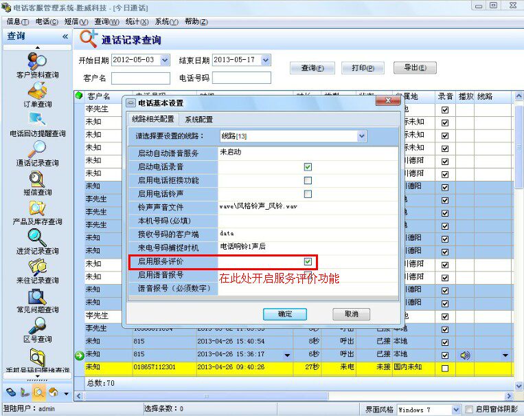 1. Функция оценки услуг: после прохождения через отрывок клиенты могут оценить службу вызовов, чтобы на этот раз забить, что удобно для руководства для контроля надзора по качеству обслуживания персонала обслуживания клиентов и понимания удовлетворенности клиентов.