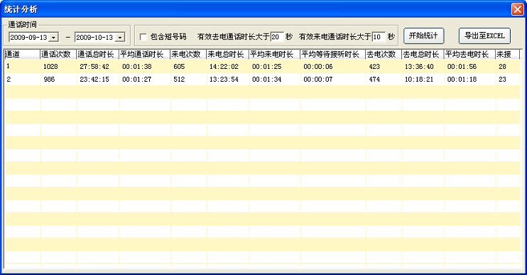 Вызовите статистический анализ:В течение определенного периода времени провести статистический анализ вызовов каждой строкиСтатистические результаты могут быть экспортированы в файл Excel.