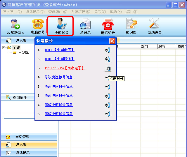 7. Computer Dial -UP, нажмите на контактный номер мыши и автоматически наберите номер по этому номеру, заменив утомительный процесс набора ручного набора кнопки, и вы можете автоматически набрать заголовок и заголовок IP.