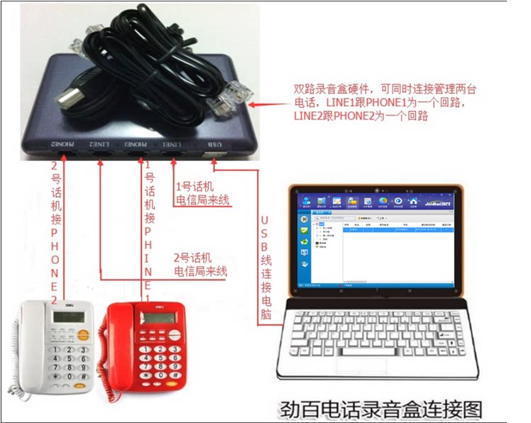 Два USB -телефона записи номера отчетность по номеру подвесные SMS Телефон Верните Посещение B/S Системная стыковка
