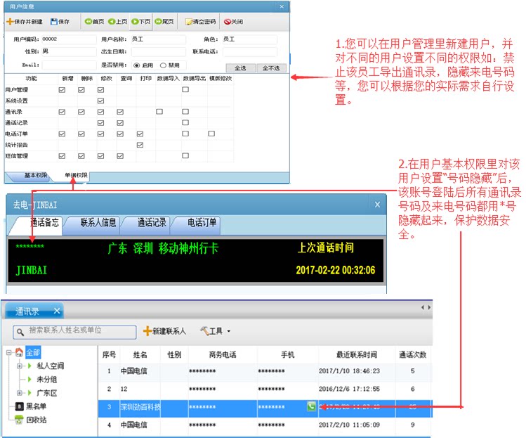 19. Функция администратора:Администраторы могут выделять разные органы власти для разных пользователей, таких как: скрыть номер вызова или запрещение данных экспортной адресной книги для пользователя, и клиент может установить его самостоятельно в соответствии с их потребностями.,