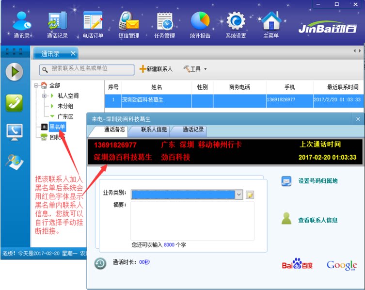 10. Черный список для адресной книги:После того, как контакт добавляет черный список, номер будет отображаться с красным шрифтом, когда вызов снова вызовет.Сущность