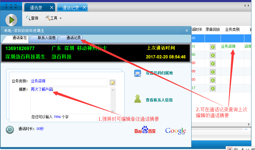 12. Звоните замечаниям:Вы можете сделать замечания по вызову при вызове экрана бомбы, заполнить сводку вызова, чтобы вы могли просмотреть его в записях звонков или быстро ответить в записях вызовов в окне POP -UP, когда клиент снова звонит, чтобы улучшить удовлетворение обслуживания Полем