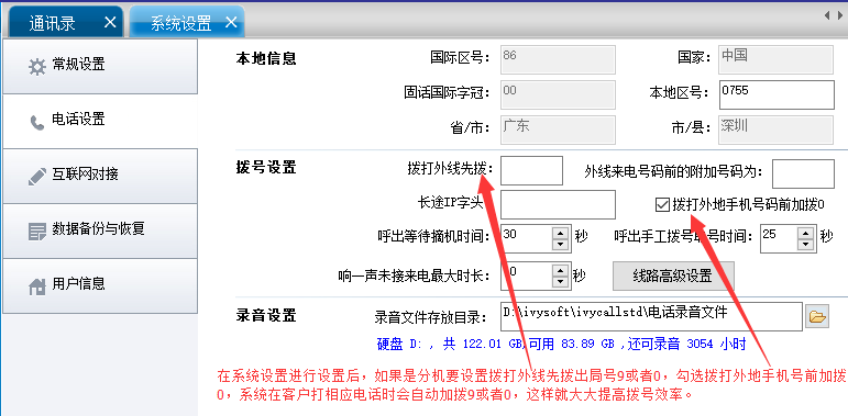 16. Автоматически добавить 0 или 9:В зависимости от фактической ситуации вашей строки, вы можете установить внешние лучи, когда вы устанавливаете систему для набора 0 или 9 (внутри телефона) и автоматически набрать 0 перед набором иностранного номера телефона.