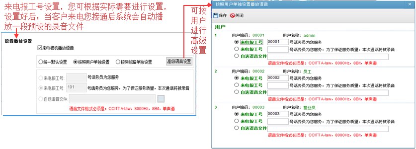 4. Приходите к номеру телеграммы:После настройки, когда клиент вызовет, вы автоматически воспроизводите свою предустановленную запись после подключения(Как показано ниже: Talkman № 101 обслуживает вас. Чтобы обеспечить качество обслуживания, этот вызов будет записан.)