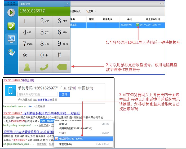 3. Компьютерный набор -IE и веб -страница.Есть места, где номер телефона отображается в программном обеспечении, может быть набор.