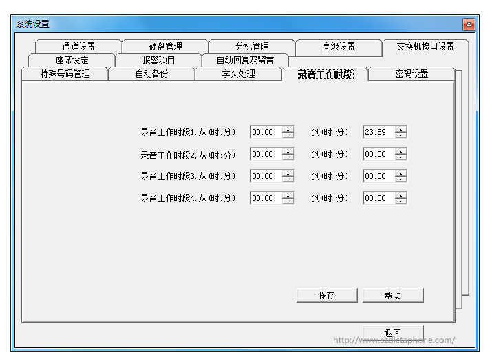 - Запись времени:Согласно фактической работе, установите период записи системы;
