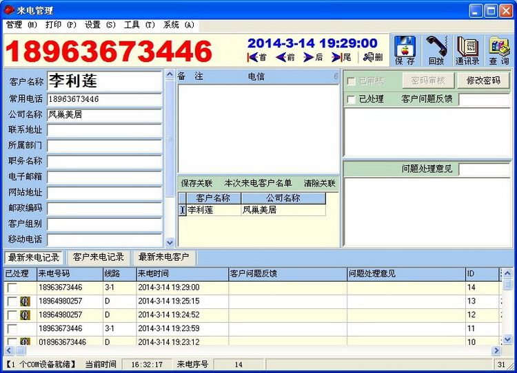 1. Когда есть телефонный звонок, номер вызова и информация о клиенте появятся автоматически. Время отображения может быть установлено само