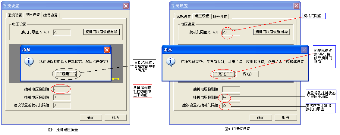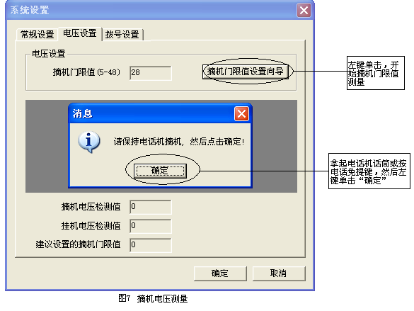 как правило, настройки напряжения не требуется.Если программное обеспечение не обнаружено и повешает трубку, необходимо сбросить значение напряжения ссоры.существовать“ Настройки системы” щелчок мыши&Ldquo; Настройки напряжения”, затем нажмите“ настройки настройки ограничения двери&Rdquo;, завершить операцию в соответствии с подсказками.Если есть ненормальная ситуация, проверьте, сначала ли подключена телефонная линия.Следующие три картины&Ldquo; Настройки напряжения&Три процесса rdquo;.