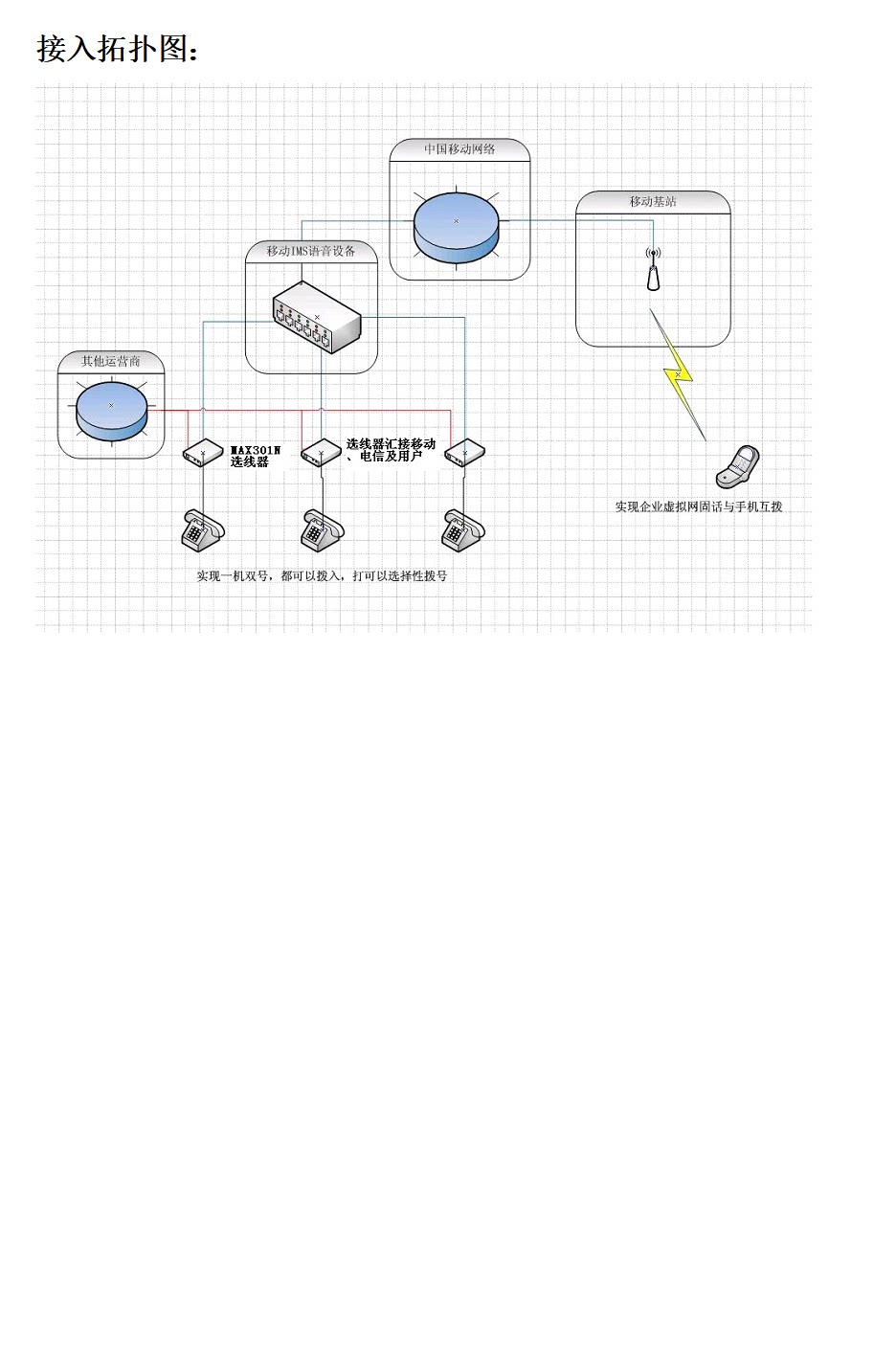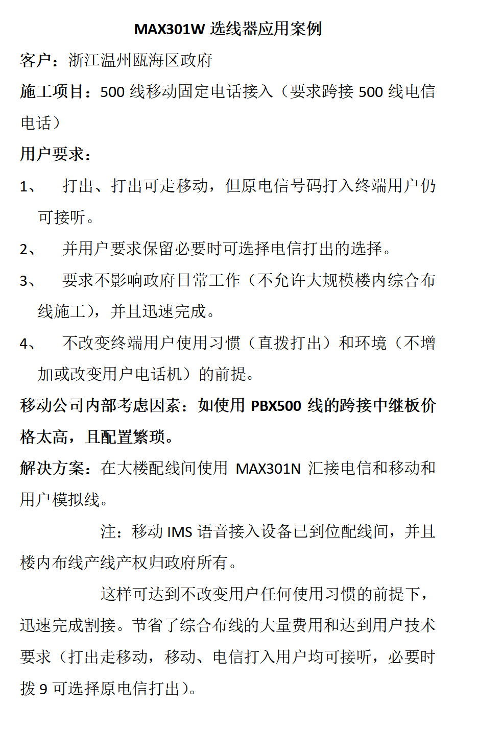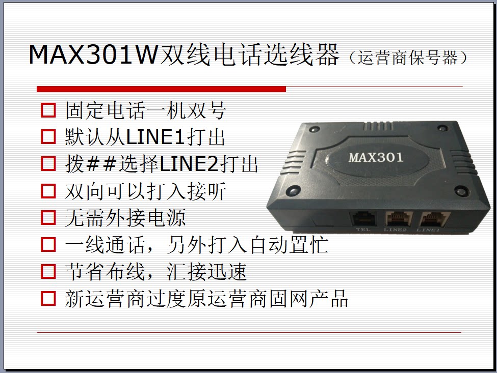 Используется в это времяMAX301Устройство выбора провода подключено к новой фиксированной сети в рамке проводки клиента,