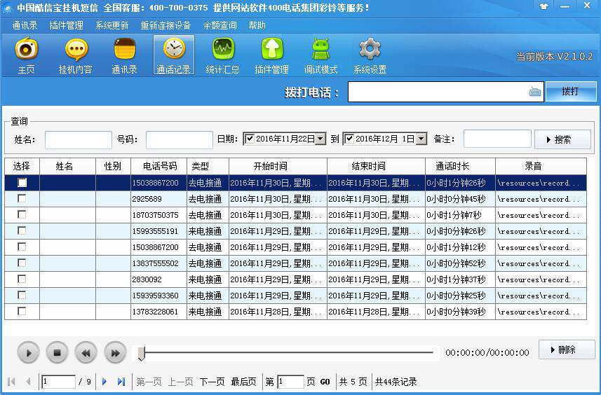 Yilian Hanging SMS -телефон управление телефонами, запись, адресная книга, управление возможностями