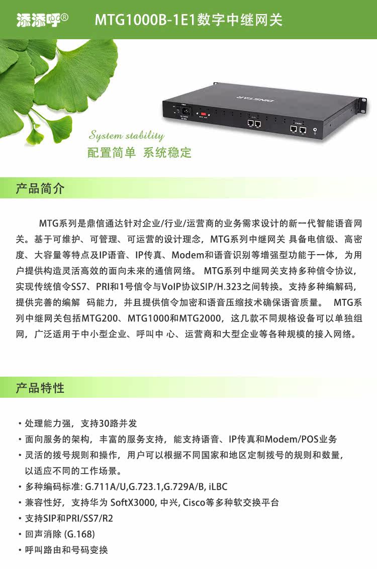 Tian Tianhuho Mtg1000b-1e1 Voip Landing Gateway/Digital Relay Gateway/Single E1
