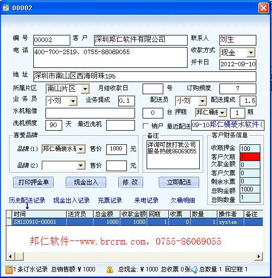 9. Вход информации о клиентах может быть быстро построена с помощью ключевых клавиш программного обеспечения, а также номер карты, адрес, контакт, день открытия карты, телефон (подсчет), метод получения, район, месячный день, частота заказа воды, частый заказа по водоснабжению , частые заказа воды, ежемесячный день, ежемесячный день, ежемесячный день, ежемесячный день, ежемесячный день дня, ежемесячный день и частые заказа воды, а также частые заказа воды. DU, мыть машину, дата продаж, Продавец / поставщик и комиссия, возможность, бутылка, любимый бренд и цена, замечания и настройки финансовой информации клиента