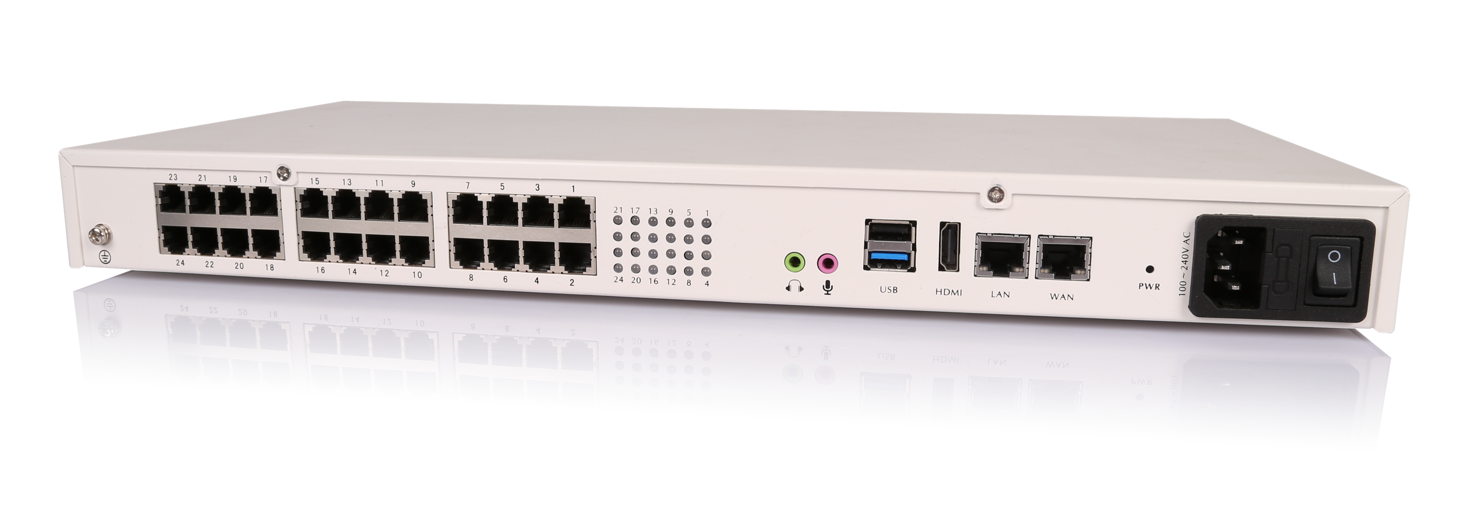Поддерживает 24 FXO/FXS.2 гигабитные сетевые порты, 1 интерфейс высокой разрешения HDMI, 16G-пространство для хранения, 2 USB-интерфейсы могут быть подключены к расширенному пространству хранения USB, поддерживают 200 расширений и 60-канальный параллельленд, установленная на стойкой установку, подходящие для предприятий с менее чем 200 человек.