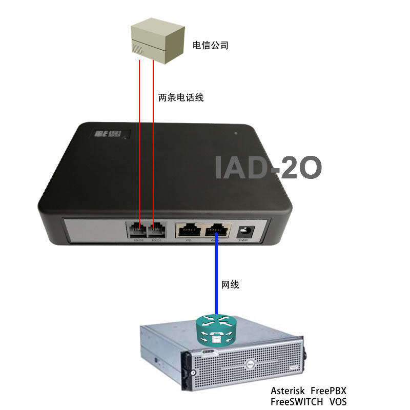 深简 Jie iad-2o Voice Gateway FXO Внешний интерфейс поддержка Asterisk freeswitch ipswbx freepbx.