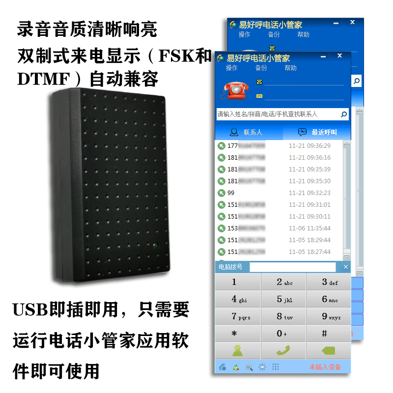 易好呼 Телефонная запись записи звонок с электрической бомбой симуляцией фиксированной -линии реального времени записывающего устройства компьютерное программное обеспечение -Оборотная запись USB -поле для USB