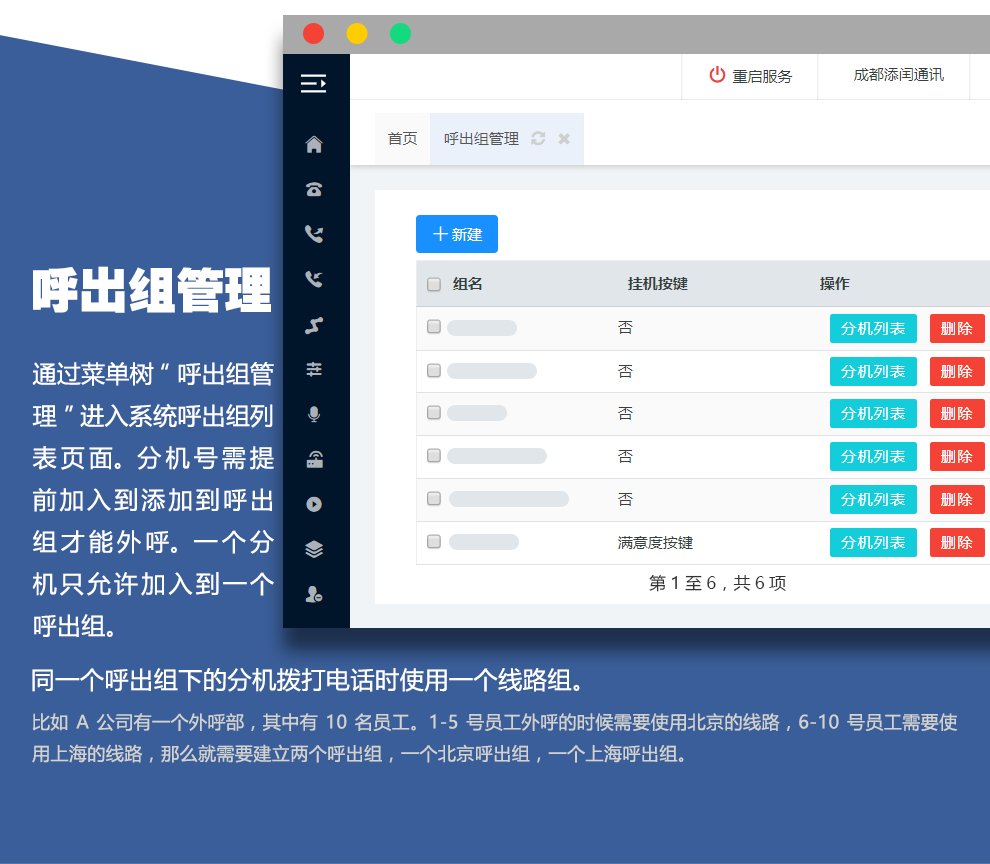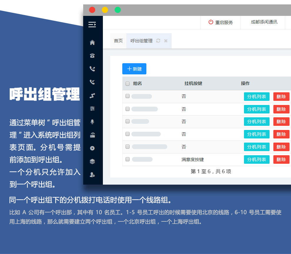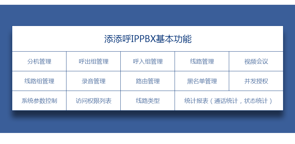 “ tian tianhuo” IPPBX - это пользовательский переключатель, разработанный Чэнду Тимом, в сочетании с более чем десятилетним опытом работы в отрасли и разработанным в результате бизнеса Call Center.Основываясь на концепции проектирования технического обслуживания, управления и эксплуатации, она имеет характеристики высокой параллелистики, высокой стабильности, масштабируемости и других характеристик. Он использует FreesWitch в качестве механизма обмена. ПБХ - это тип метода управления телефонной связи, обычно используемых в современном Офис. Внешние лучи внешних лучей Коко вызывают и выдыхают внутри.Предоставьте пользователям гибкие и эффективные будущие решения Call Center.