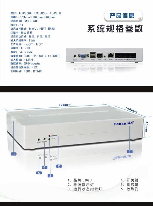 Tangxin TQ1904 Настольный компьютер 4 -милый телефонной записи.