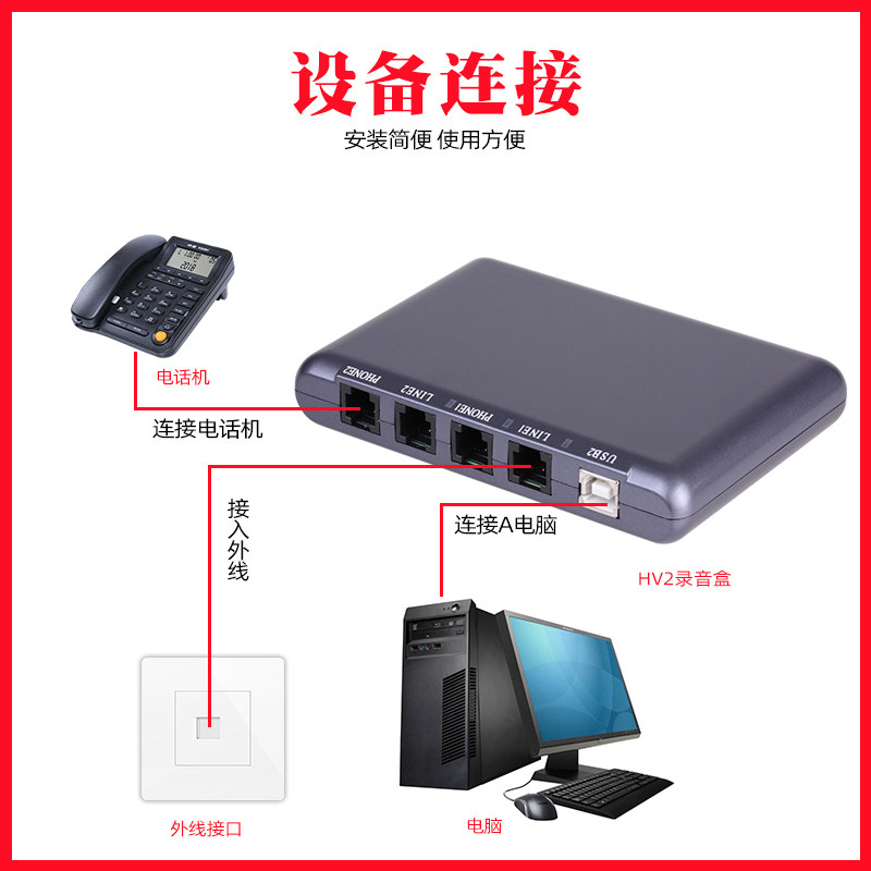 Hangpu HV2 телефонная запись телефона Система записи телефона Диаграмм -Запись оборудования для записи оборудования для оборудования.