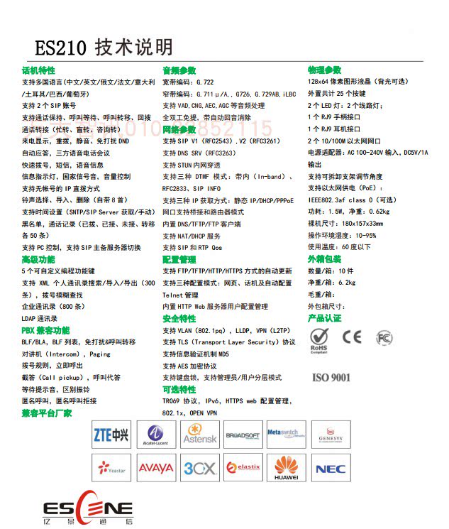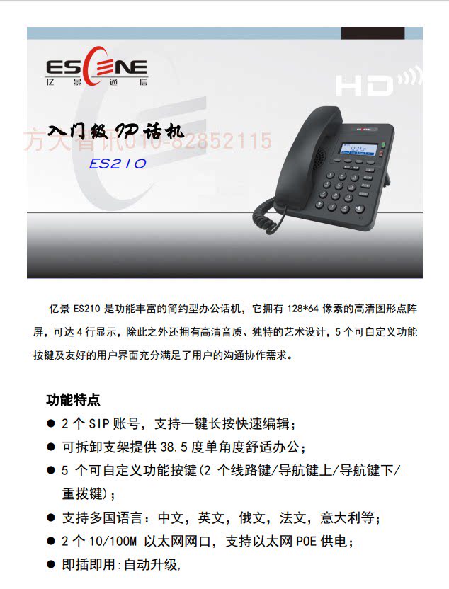 ES210 Двухцветный бизнес -офис Smart IP Talk Machine Двойной сетевой порт IP Phone SIP Phone