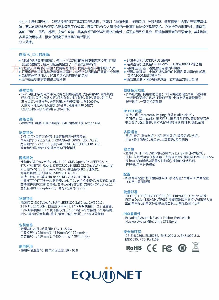EQ-D21 Equinet IP/SIP Network Talking Machine Шесть строк 100 м IP