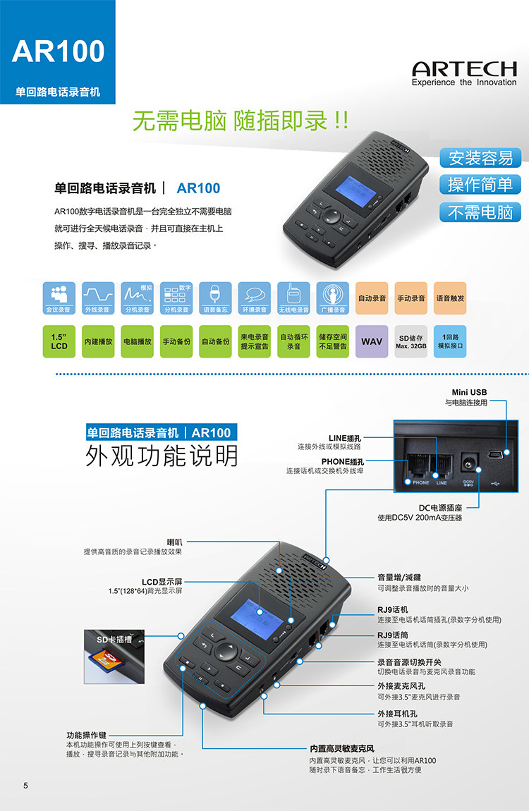 Alcock AR100 AR120 Независимое телефонное устройство для записи телефонного телефона Бесплатный компьютер проводной стационарная линия фиксированная автоматическая ручная запись
