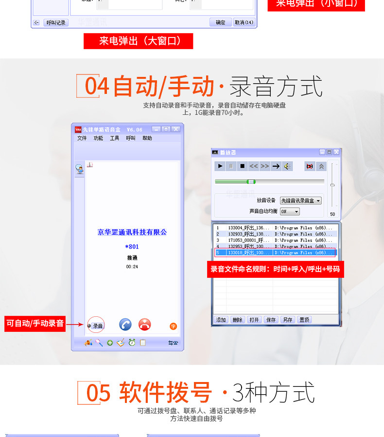 先锋 Одноканальное окно вызова USB-звонка, онлайн-запись компьютера, автоматическое массовое хранение вызовов и ответов гарнитуры и ответов