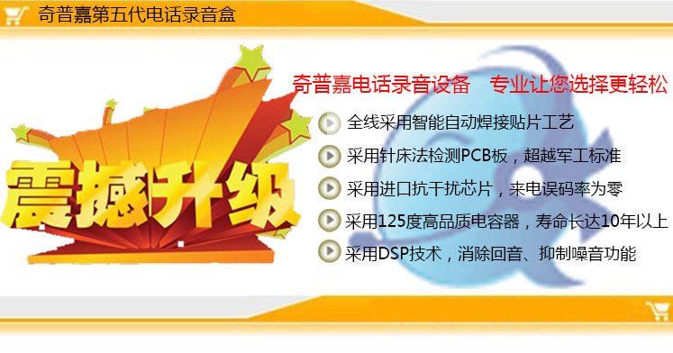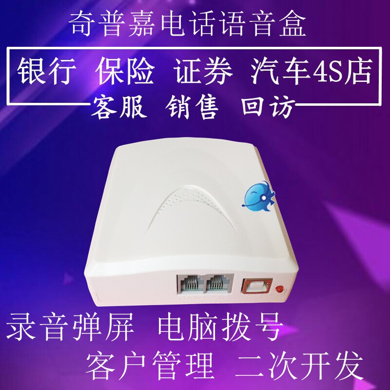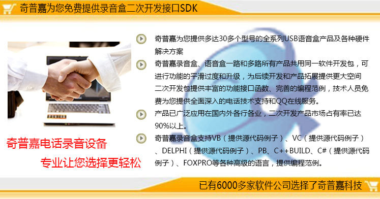 &[nbsp;硬件提供一个USB1.1口、一个电话线(LINE)RJ11口、一个电话机RJ11口、一个内置放音喇叭。][奇普嘉录音盒广泛应用:]