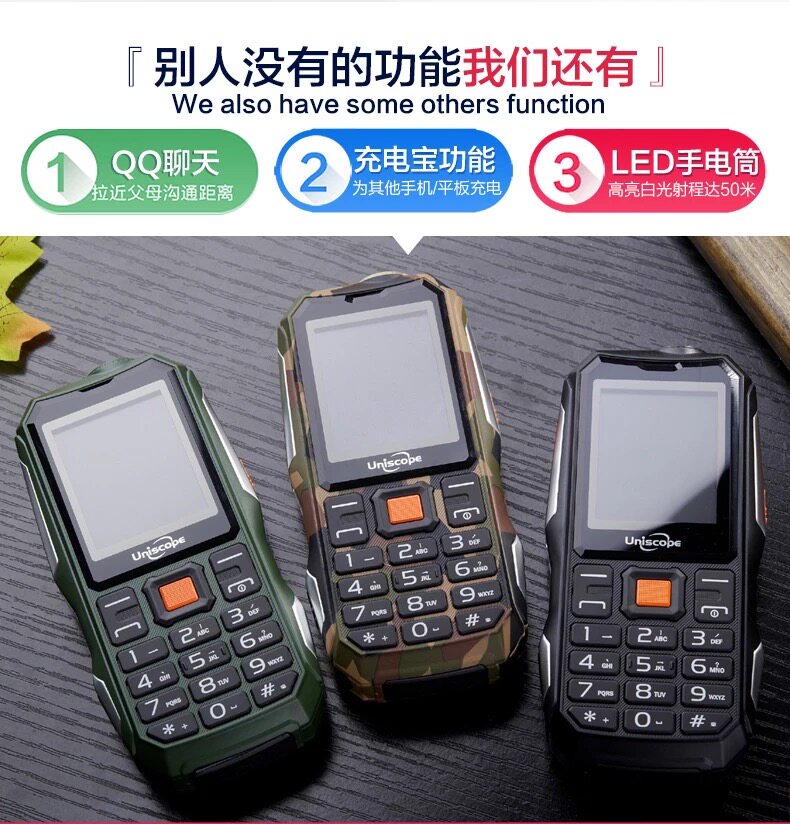 UniscopE/优思 Сверхдлинный мобильный телефон защищен от пыли, воды и ударов для пожилых людей с зарядкой