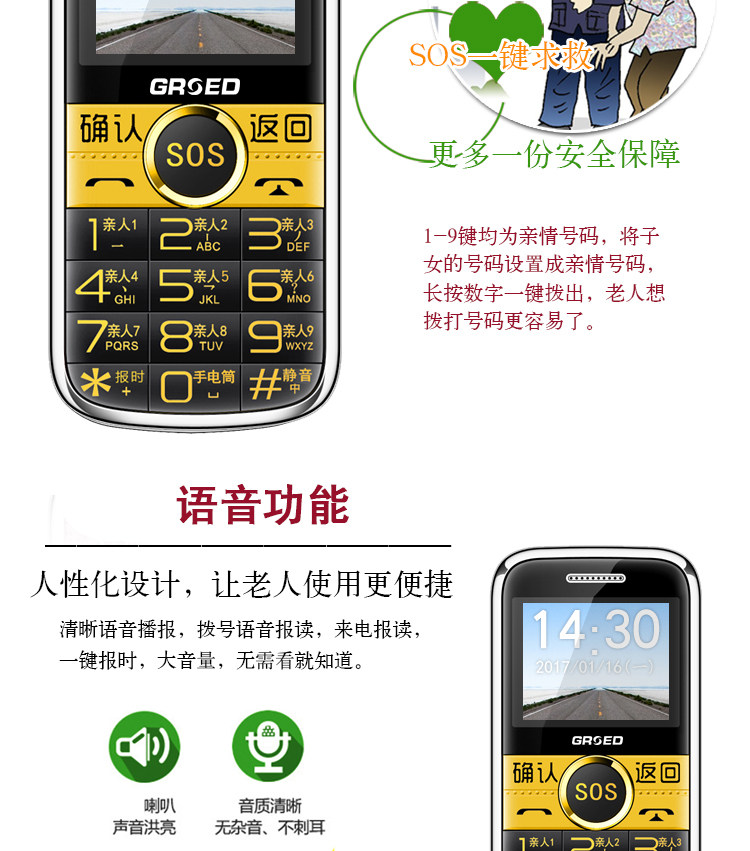 GRSED E2200 Golden Shengda подлинный пожилой мобильный мобильный утро Big Morning Big Button One -Click Dial Sos Big Hearry