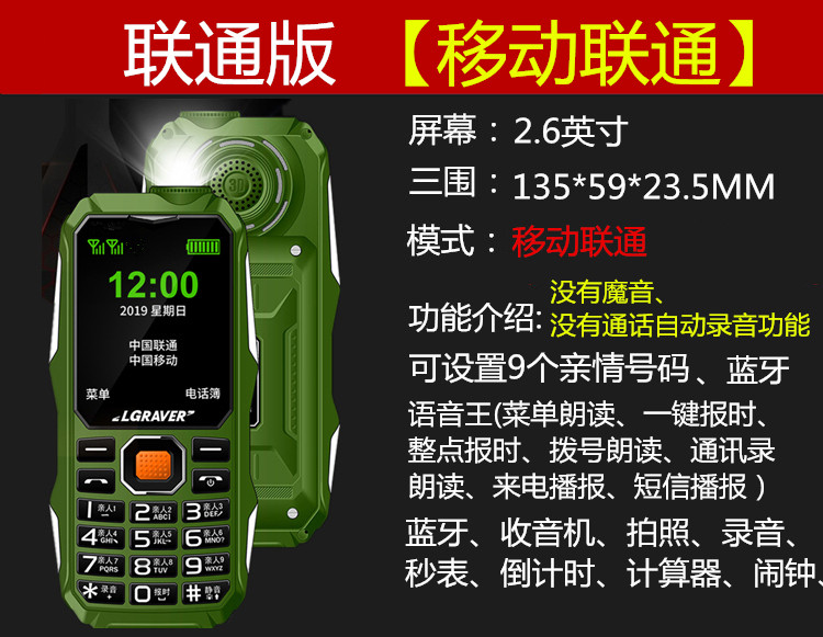Unicom Mobile EditionВведение функции: 2.6 -INCH High -Definition Экран, один -клик -фонарик, одна -клика газета, семейный номер, голосовой король, Bluetooth, позиционирование GPS, зарядное сокровище, число принадлежностей, MP3 и т. Д.