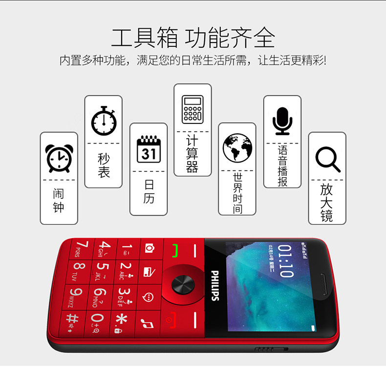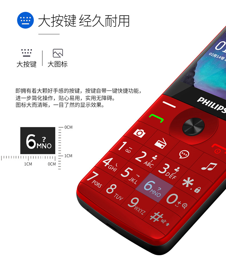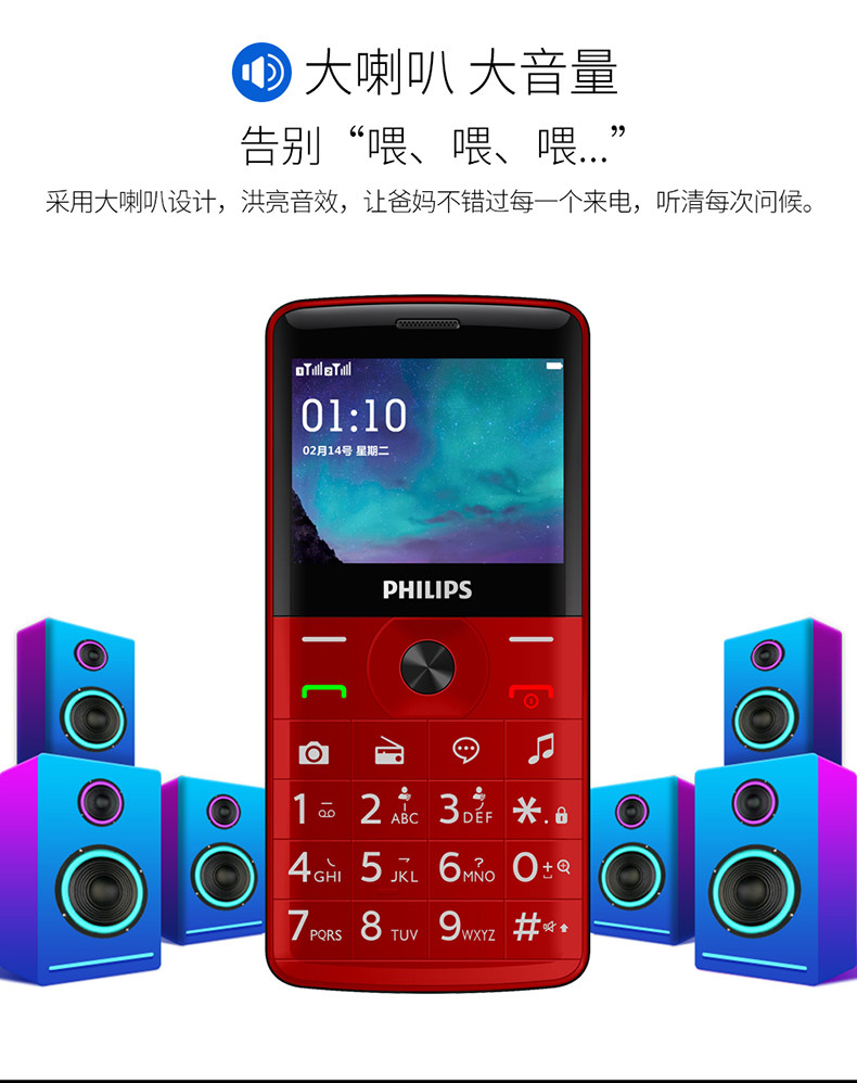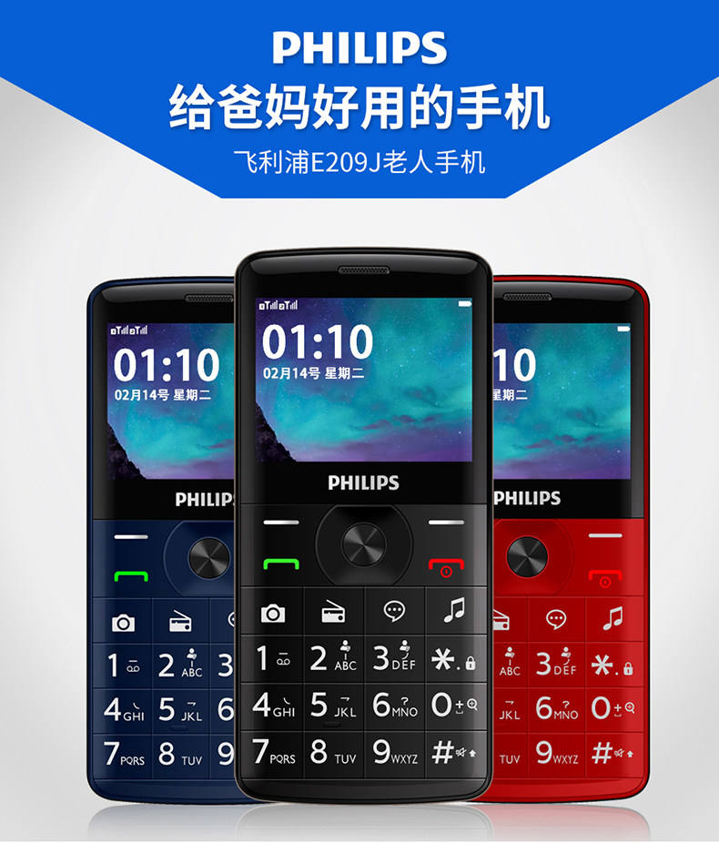 Philips/飞利浦 Сверхдлинный мобильный телефон для пожилых людей подходит для мужчин и женщин для школьников, E209, широкий экран