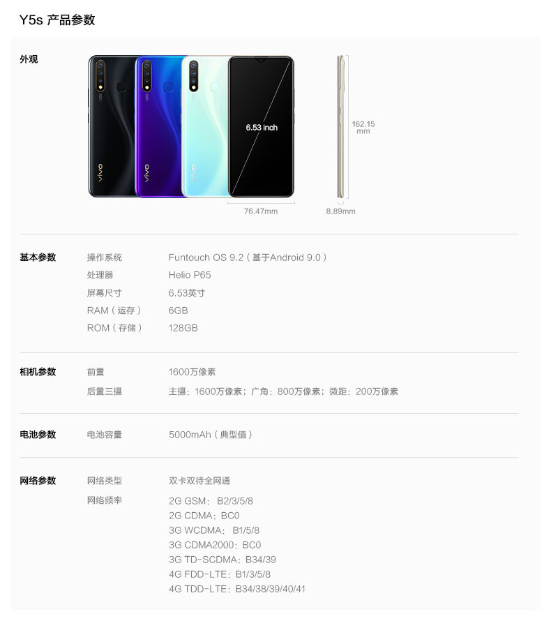 [Фаза 6 Процент -Бесплатный подарок на покупку] vivo y5s Новая большая батарея длительный срок службы батареи вспыхивает супер широкоугольную мудрость Три флагманского подлинного национального совместного страхования Старики y5s y3