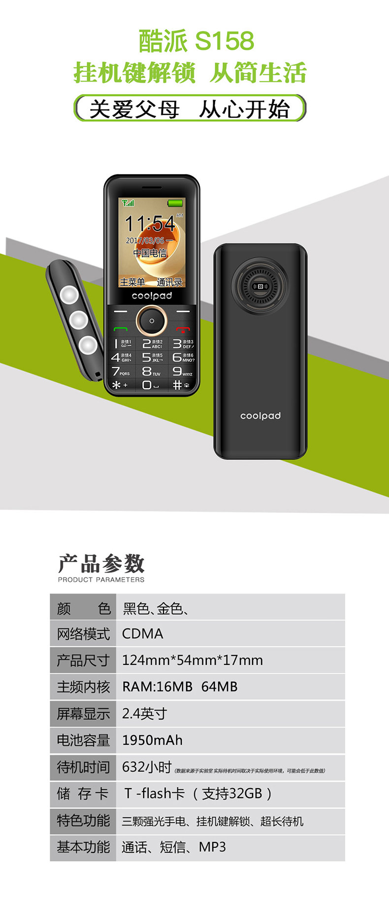 Coolpad/酷派 S158, сверхдлинный мобильный телефон для пожилых людей для школьников подходит для мужчин и женщин, звуковая система