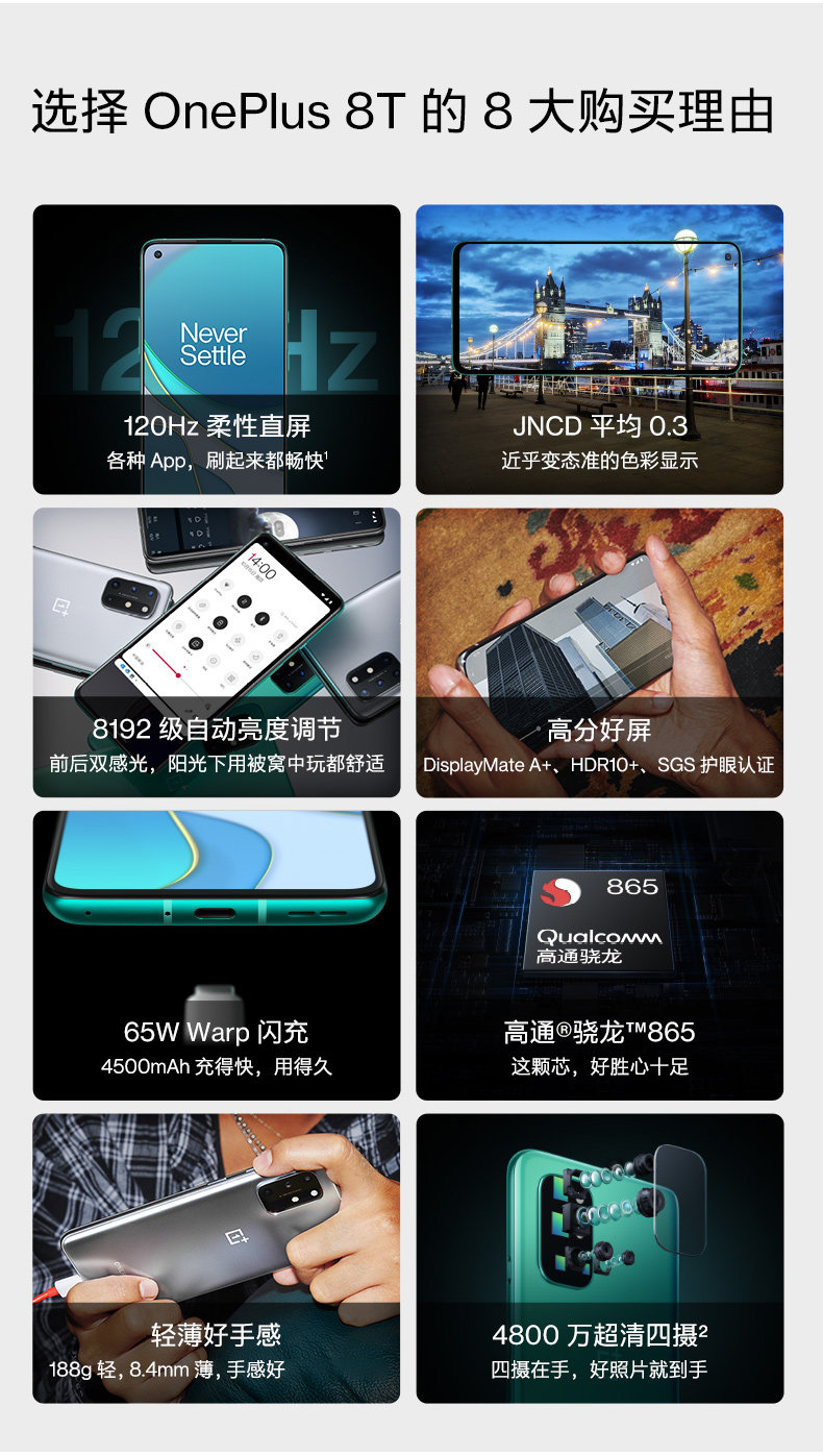 OnePlus OnePlus 8t 5g Full Netcom's Официальный флагманский флагманский флагман подлинного 120 Гц Qualcomm Snapdragon 865 Новый продукт 1 плюс 8 Game Smartphone 1+8t